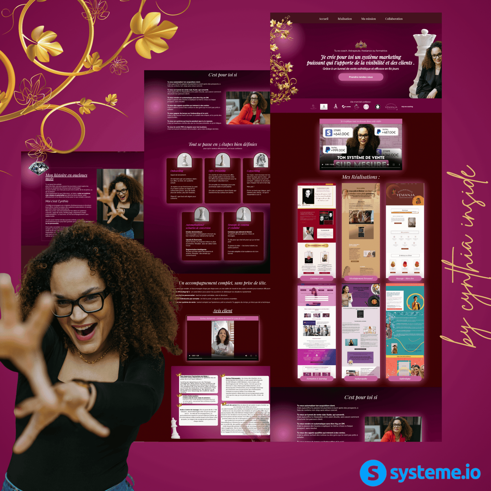 Système de vente clé en main – Création, design et automatisations Système.io, avec une approche élégante et structurée.