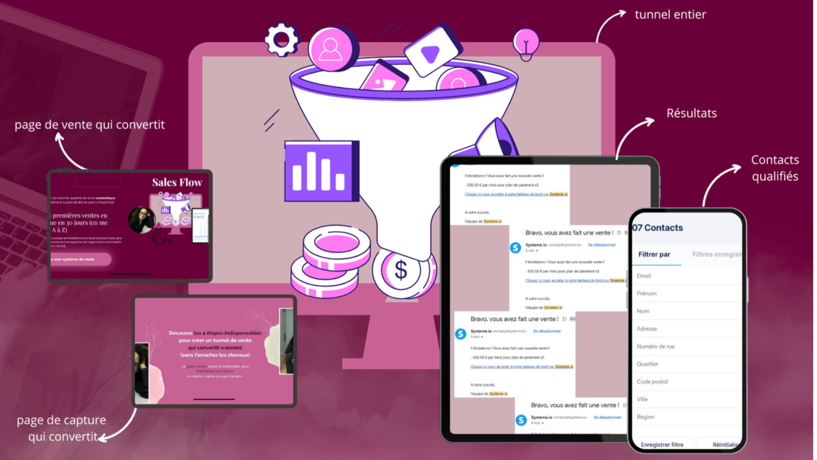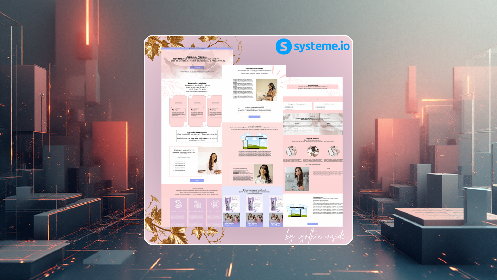Système de vente clé en main – Création, design et automatisations Système.io, avec une approche élégante et structurée.